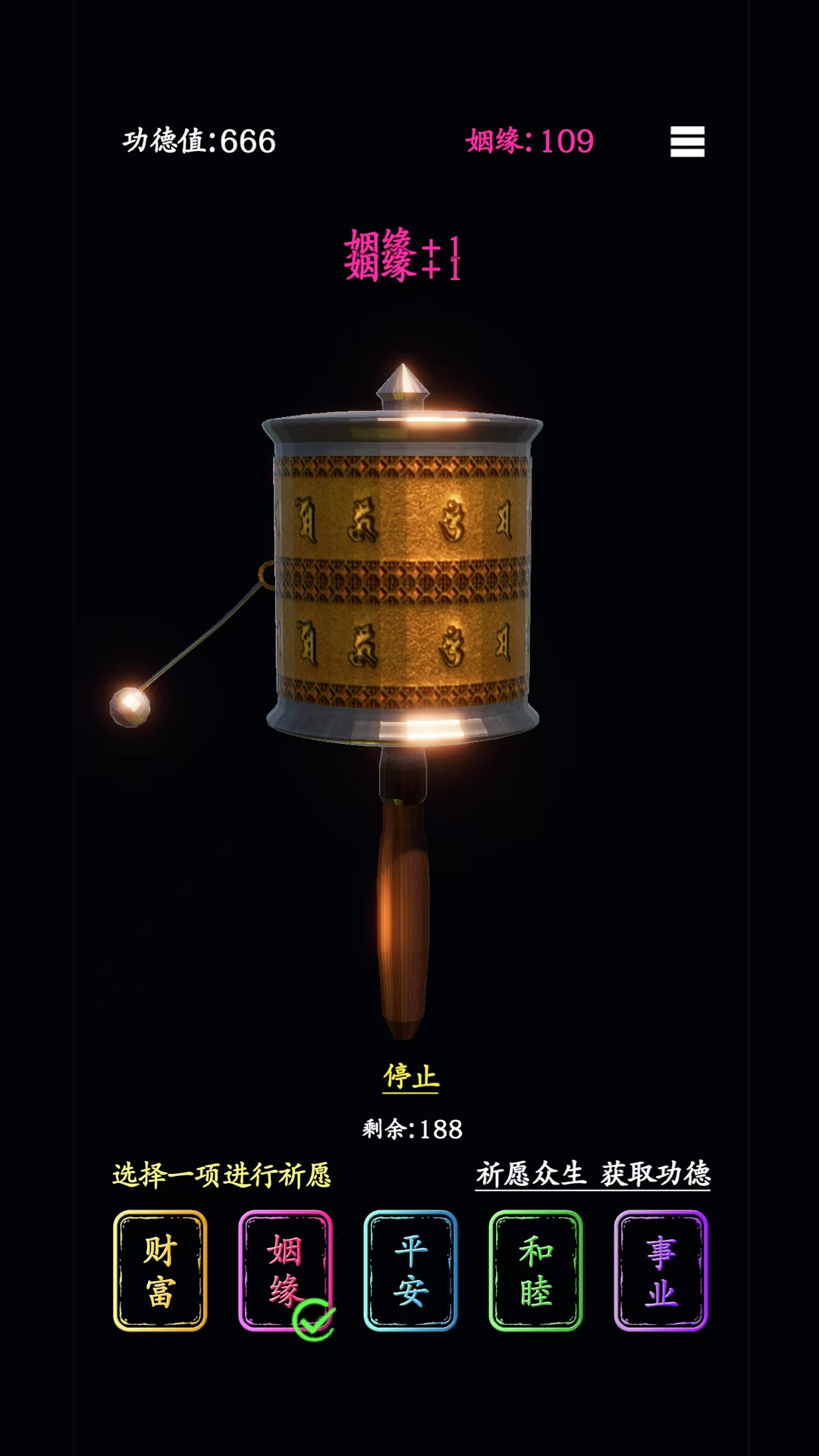 《祈愿转经》是祈愿转经一款专为现代人设计的休闲模拟小游戏,在这个游戏中,祈愿转经将用户逐渐带入一个祥和的祈愿转经状态中